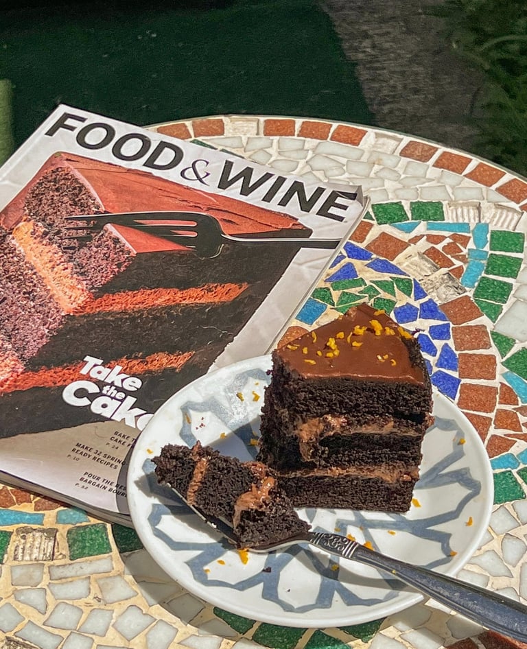 I picked up food & wine magazine that showed irresistible picture of chocolate cake in the nearest city's library, after reading through pages found out it was the chocolate cake I saw in "The Bear".